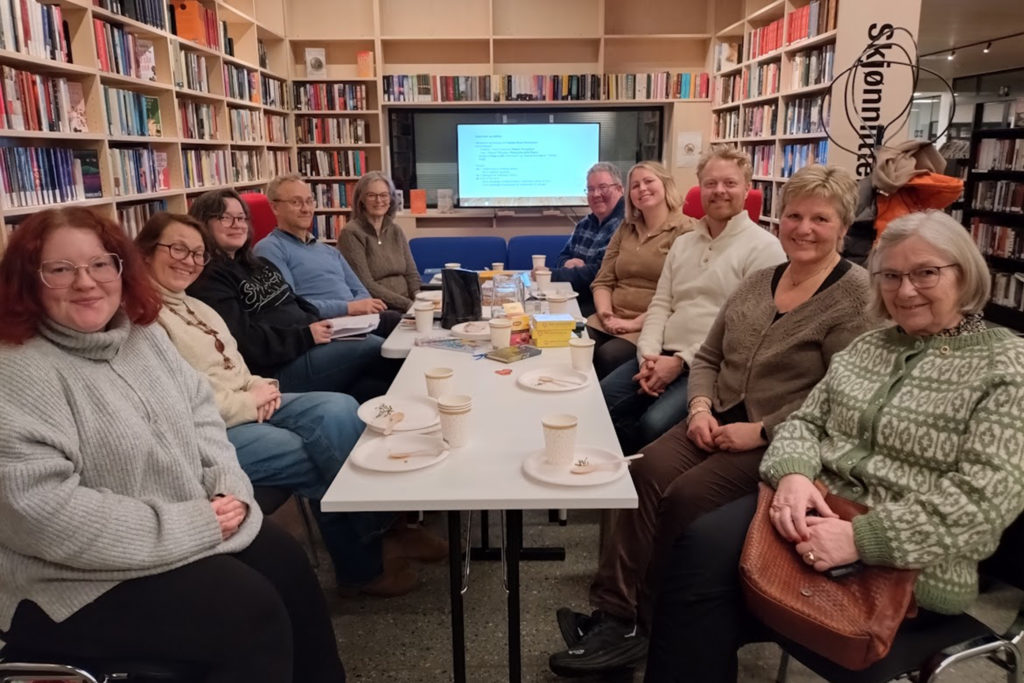 Slabberas og årsmøte på Brattvåg bibliotek. Frå venstre: Margrete Sofie Rogne, Isabella Rubie Pareliussen, Natalie Diaz Rakvåg, Rune Einarsson Løndal, Trude Finnanger, Jarl Inge Haram, Line Mork Vatneødegård, Lars Martin Vik, Randi Skjelten og Kristin Håvik Breivik.